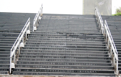 上圖是在台中清水休息站暫停時拍的.每次我們家出門經過清水休息站只能看美麗的夜景,因為都已大半夜,所以,從來沒發現這裡躲著一個寫滿歷史的階梯.上面寫著從明朝到日據時代清水各個時期的地方記事,饒有古趣,下次經過時,要好好瞧瞧喔.^^