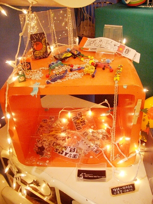 原來這裡是幾個藝術相關科系學生合開的店,他們分別是:黑先生 湘茹 立佩 狗皮 布魯克 金露露 和幫保 ;圖中那雙玉手的主人就是美女狗皮.當下只有她一個人在顧店,因為沒客人來玩耍,所以,無聊得快睡著了,不過,我們家來了後就不一樣了喔.