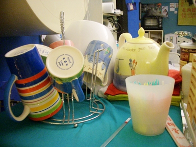 咖啡杯和茶壺也跟狗皮妹妹一樣:美麗又可愛.