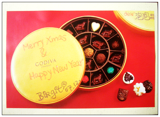 卡片背面用的是某名牌巧克力(我沒做置入性行銷喔)的圖片,嘿嘿嘿,簡單又大方,吃了看了又不會發胖.