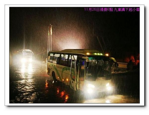 11月26日上午離開九寨溝前往機場,準備搭機前往成都,準備繼續參加11月27日的峨嵋`青城兩天團:清晨6點,小雪紛飛~